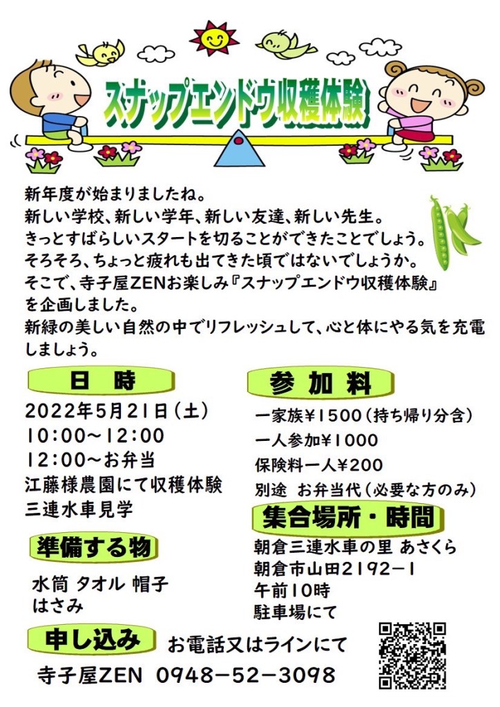 スナップエンドウ収穫体験 in 朝倉