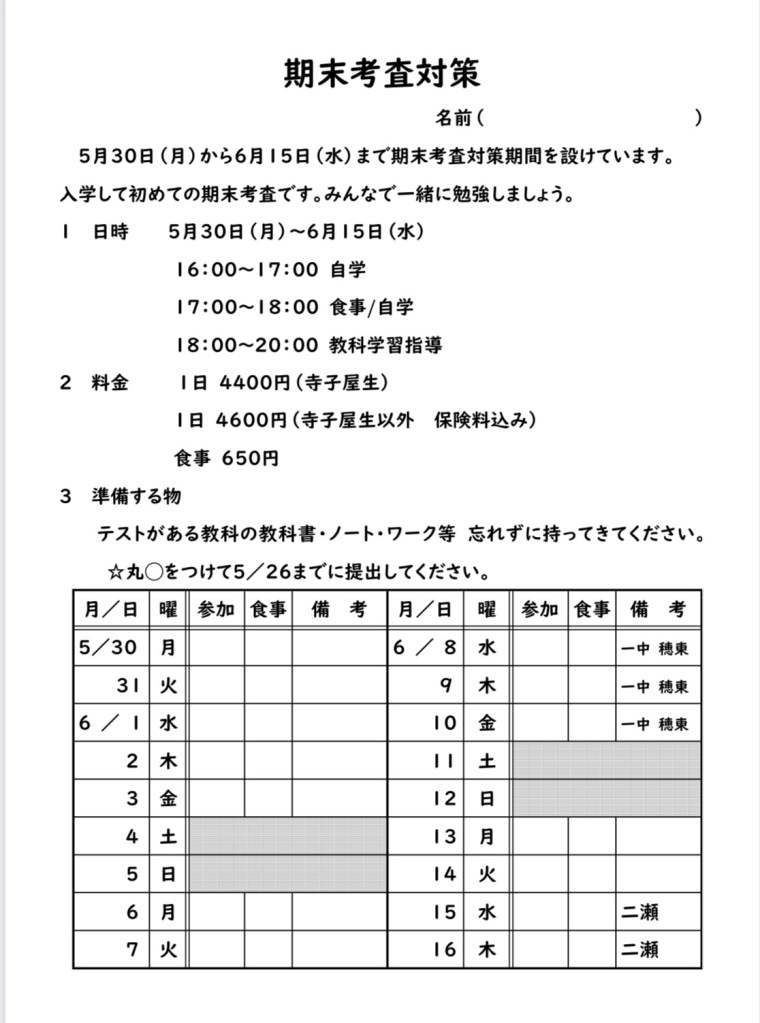 寺子屋ZEN 期末考査対策✏️
